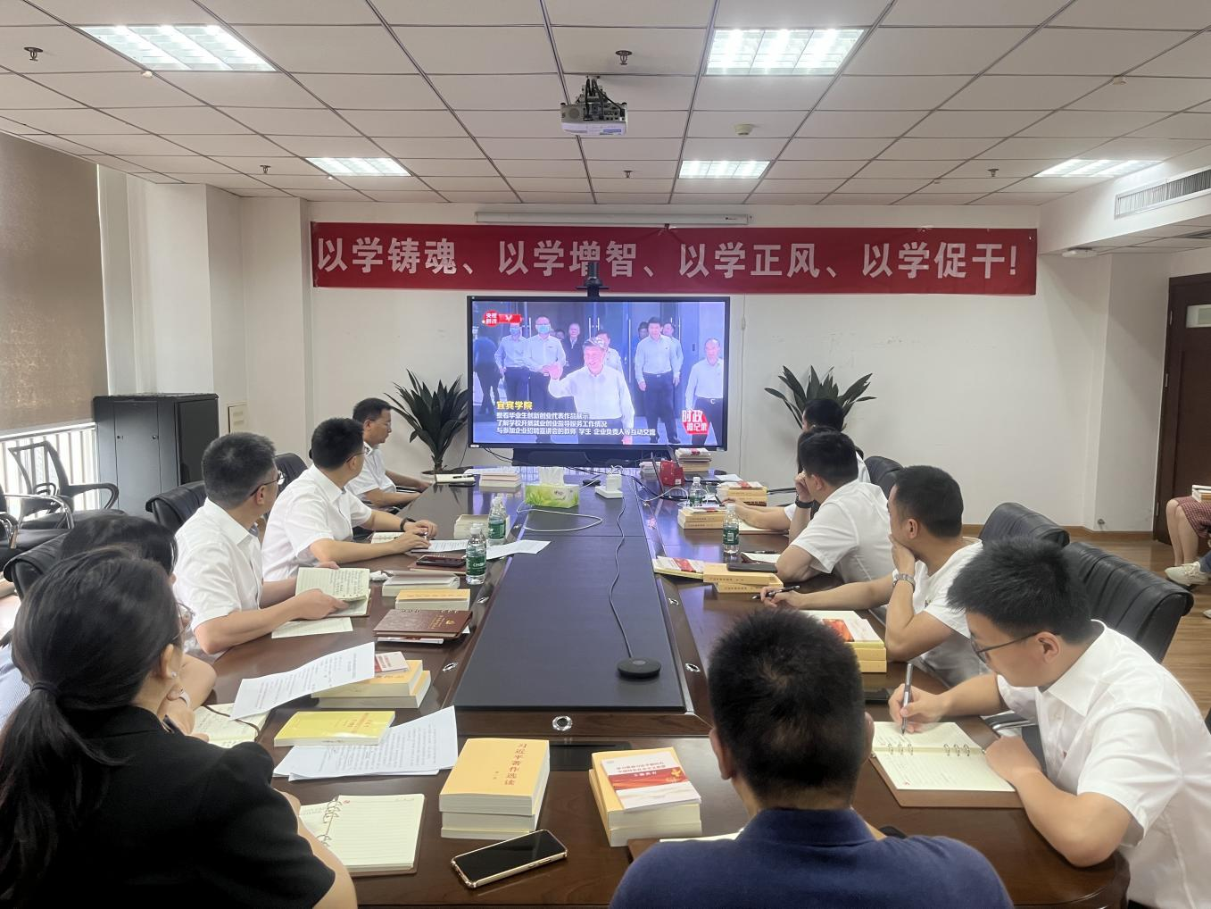 會(huì)上,全體黨員、入黨積極分子、班子成員觀看了習(xí)近平總書記2022年6月來(lái)川視察官方新聞報(bào)道視頻,聆聽習(xí)近平總書記來(lái)川調(diào)研的一系列重要指示。通過(guò)讀原著、學(xué)原文的方式,組織與會(huì)人員專題學(xué)習(xí)了《習(xí)近平著作選讀》《習(xí)近平新時(shí)代中國(guó)特色社會(huì)主義思想學(xué)習(xí)綱要(2023版)》等書籍內(nèi)容,堅(jiān)持在集體研學(xué)的同時(shí),認(rèn)真?zhèn)€人自學(xué),不斷增進(jìn)與會(huì)人員對(duì)黨的創(chuàng)新理論和政治認(rèn)同、思想認(rèn)同、感情認(rèn)同,引領(lǐng)推動(dòng)與會(huì)人員做到學(xué)思用貫通、知行信合一。學(xué)習(xí)后,參會(huì)班子分享了自己在學(xué)習(xí)貫徹習(xí)近平新時(shí)代中國(guó)特色社會(huì)主義思想主題教育中的學(xué)習(xí)方法和學(xué)習(xí)心得。