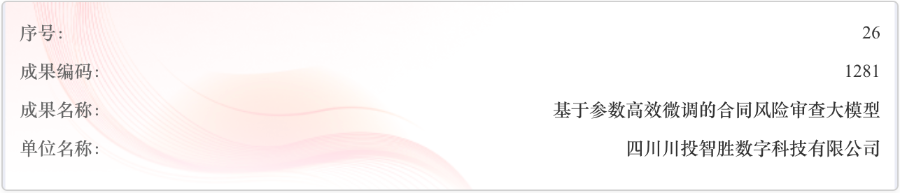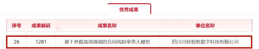 本次活動以“數(shù)據(jù)建模 賦智監(jiān)管”為主題,圍繞國資監(jiān)管和企業(yè)管控共性問題,設(shè)立了12個賽道27個賽題。川投數(shù)科憑借自主研發(fā)的“基于參數(shù)高效微調(diào)的合同風(fēng)險審查大模型”,從全國772個參賽模型作品中脫穎而出,獲評“內(nèi)部監(jiān)督——風(fēng)險識別預(yù)警”賽道“優(yōu)秀成果”獎,成為四川省屬國有企業(yè)中唯一獲此榮譽的單位。